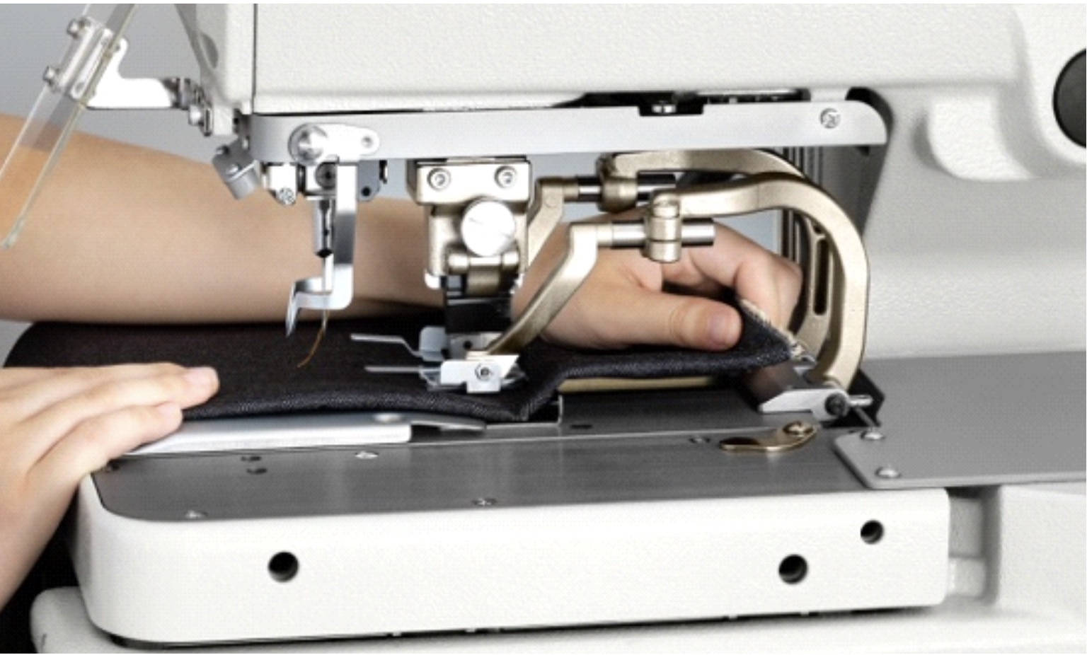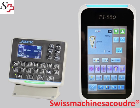 Toutes les touches de fonction sont accessibles du bout des doigts sur l’écran. La machine est très simple d’utilisation et se commande à l’aide d’une seule pédale multifonction : fermeture de la pince et démarrage de la couture.