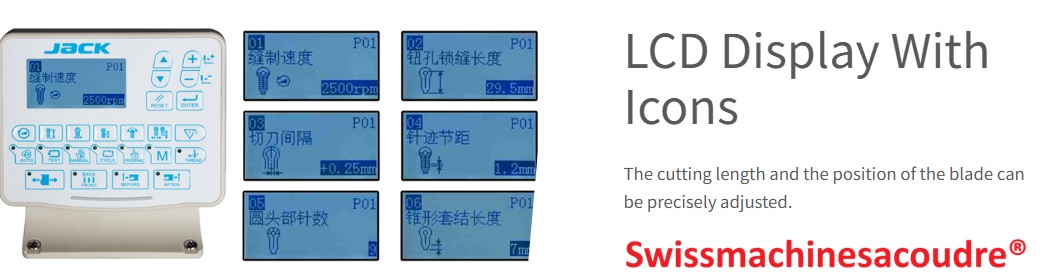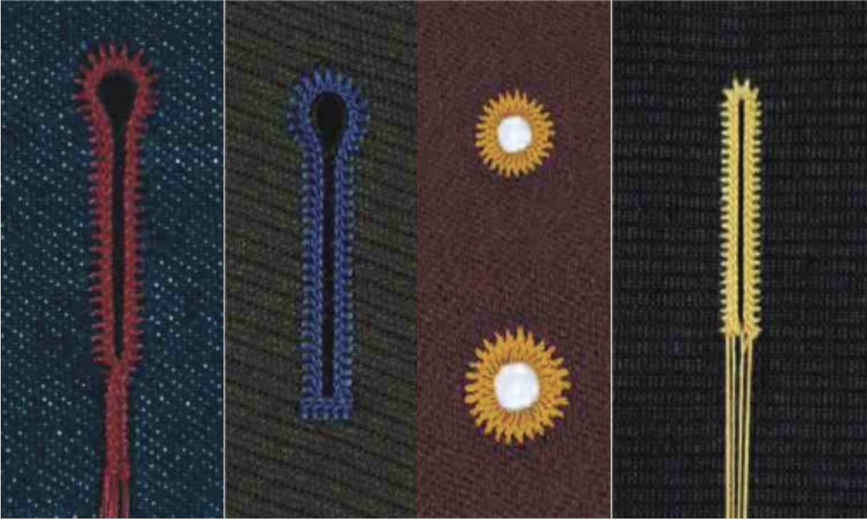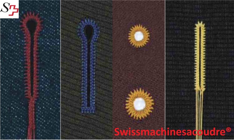 Machine à coudre les boutonnières, couture symétrique et précise pour les boutonnières et les cercles, idéale pour les vestes et les pantalons. Coupe-fil intégré à l’aiguille et au crochet.