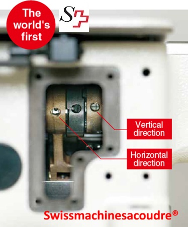 Le point d’entraînement est réglable de l’extérieur. Il est désormais réglable verticalement et horizontalement, améliorant ainsi la réactivité aux matières à coudre.